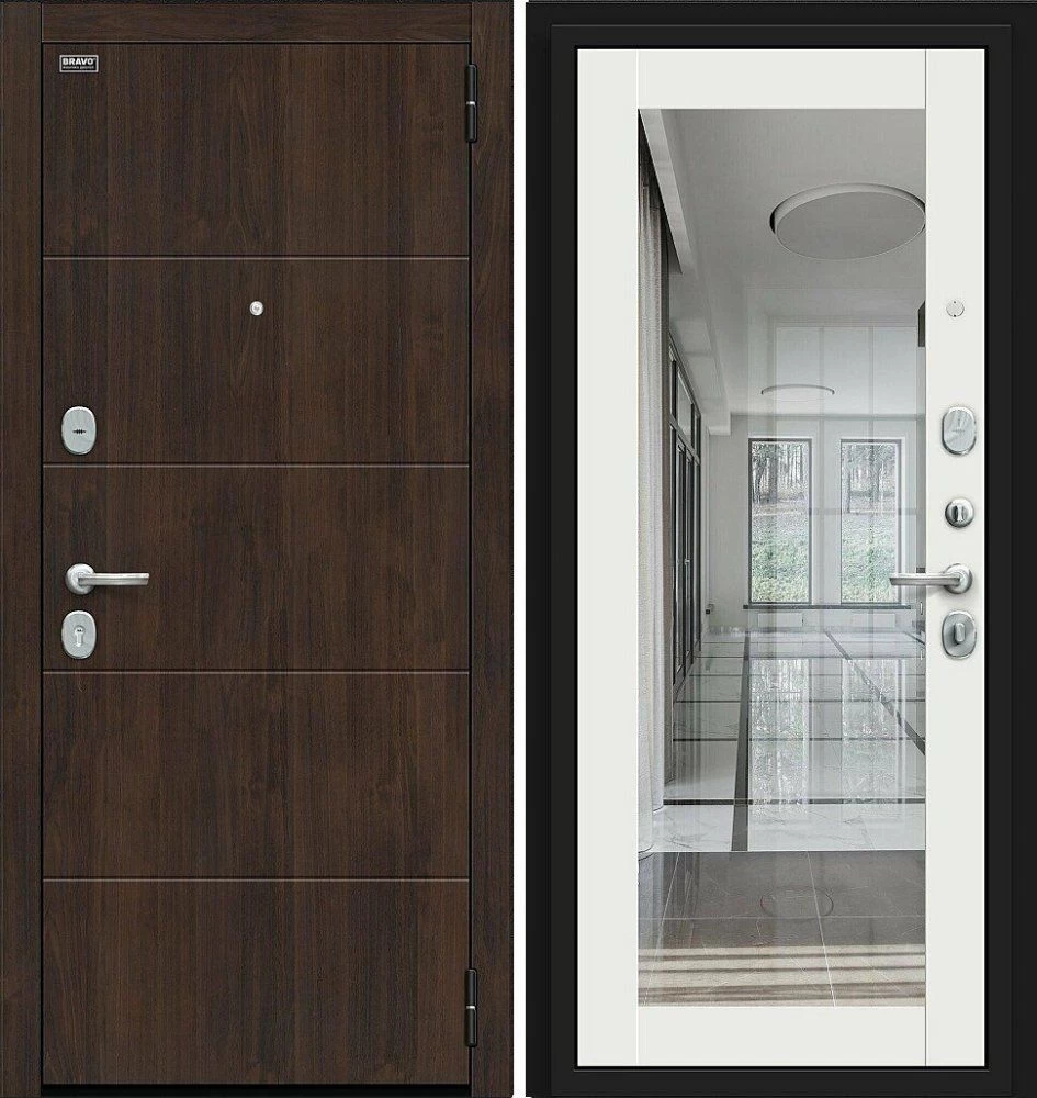 Надежная входная Дверь Браво Флэт Kale Almon/Off-white премиум класса по цене 41 379 руб. Большая толщина стали защитит от проникновения в ваш дом, квартиру или коттедж. Используется очень качественная фурнитура: замки, цилиндры, ручки, защелки. Покрытие и отделка двери изготовлено под внимательным контролем производителя. Дверь имеет долгий срок службы и гарантию.