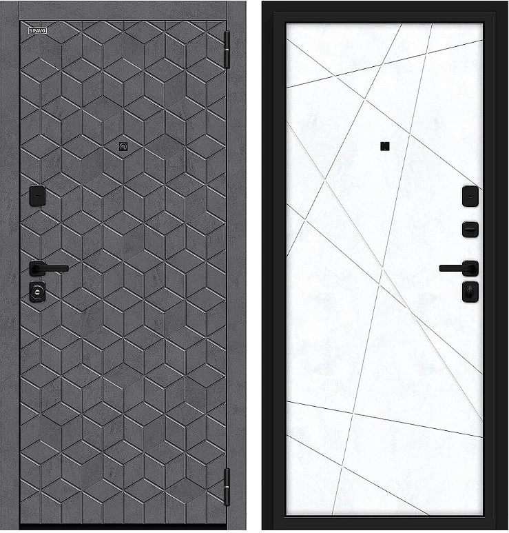 Надежная входная Дверь Браво Кьюб/SBlack Slate Art/Snow Art премиум класса по цене 38 929 руб. Большая толщина стали защитит от проникновения в ваш дом, квартиру или коттедж. Используется очень качественная фурнитура: замки, цилиндры, ручки, защелки. Покрытие и отделка двери изготовлено под внимательным контролем производителя. Дверь имеет долгий срок службы и гарантию.