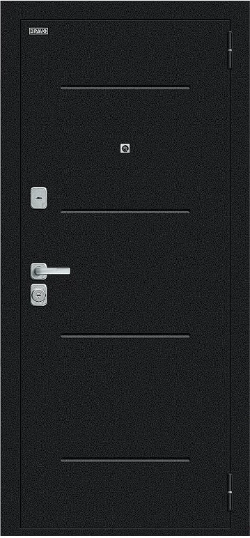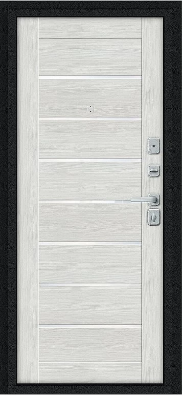 Надежная входная Дверь Браво Техно/BChrome Букле черное/Bianco Melinga премиум класса по цене 34 579 руб. Большая толщина стали защитит от проникновения в ваш дом, квартиру или коттедж. Используется очень качественная фурнитура: замки, цилиндры, ручки, защелки. Покрытие и отделка двери изготовлено под внимательным контролем производителя. Дверь имеет долгий срок службы и гарантию.
