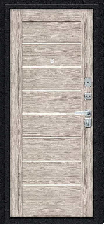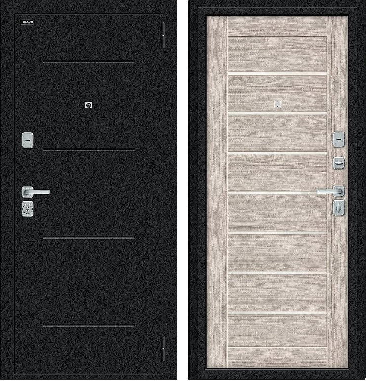 Надежная входная Дверь Браво Техно/BChrome Букле черное/Cappuccino Melinga премиум класса по цене 34 579 руб. Большая толщина стали защитит от проникновения в ваш дом, квартиру или коттедж. Используется очень качественная фурнитура: замки, цилиндры, ручки, защелки. Покрытие и отделка двери изготовлено под внимательным контролем производителя. Дверь имеет долгий срок службы и гарантию.